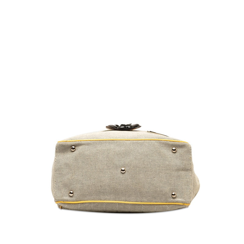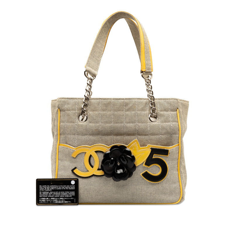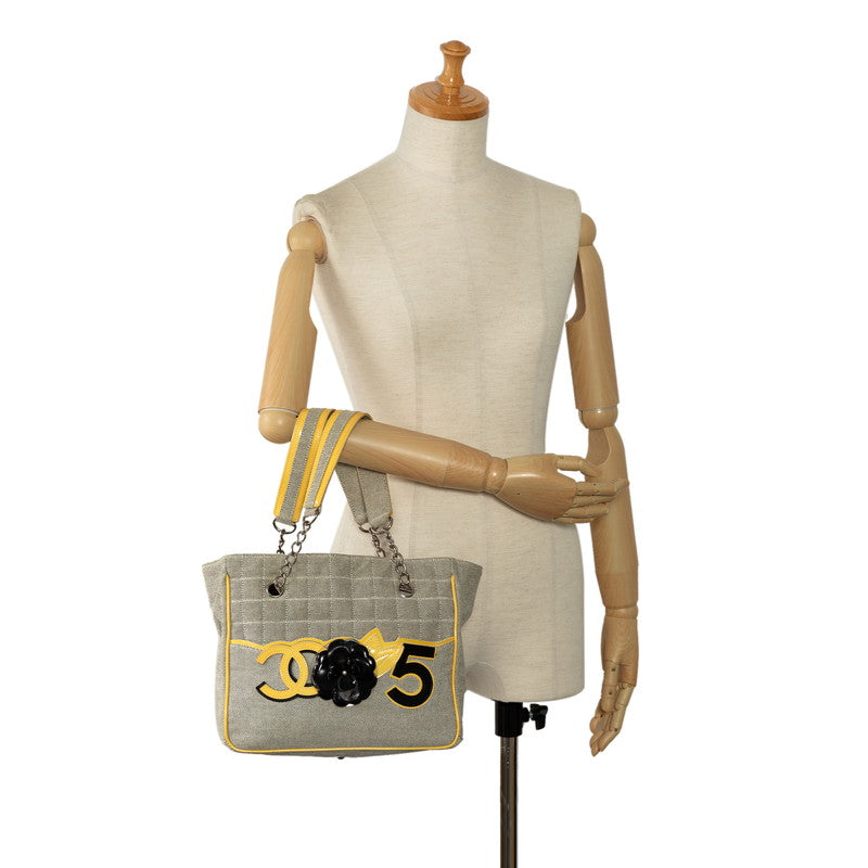 シャネル NO.5 チョコバー カメリア チェーン ハンドバッグ A31573 イエロー グレー キャンバス エナメル レディース CHANEL 【中古】