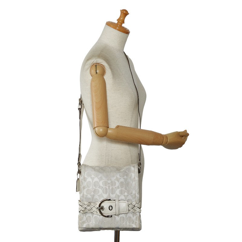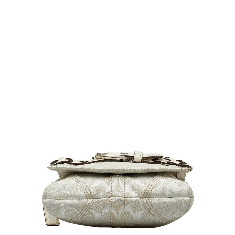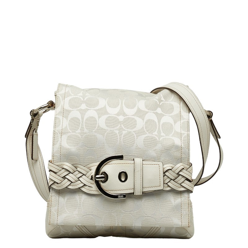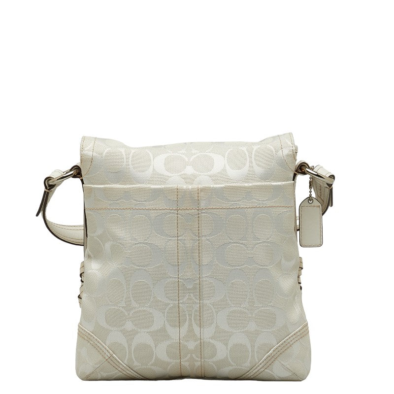 コーチ シグネチャー 斜め掛け ショルダーバッグ ホワイト キャンバス レザー レディース COACH 【中古】