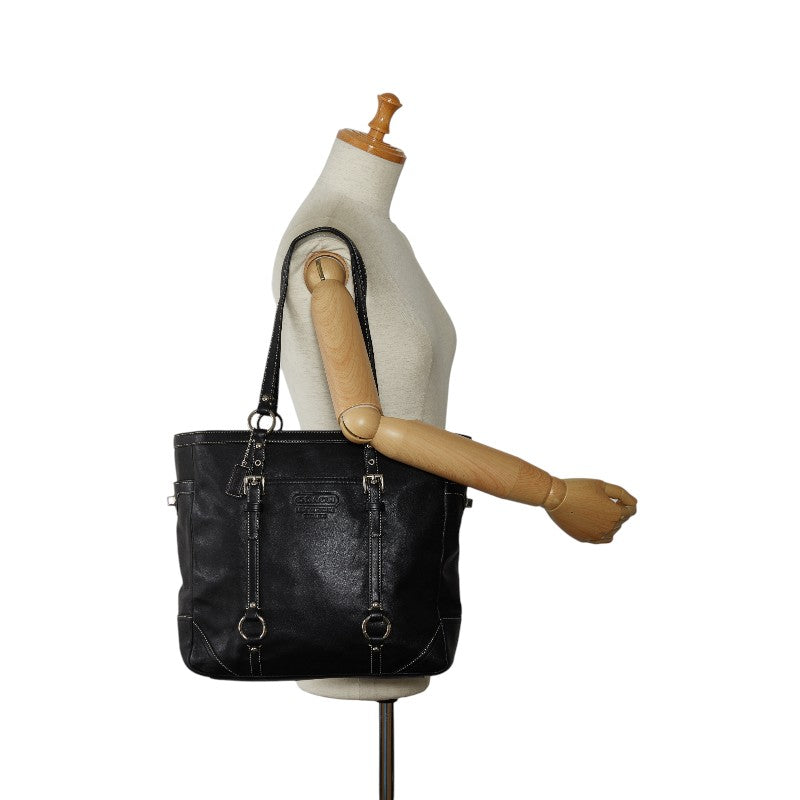 コーチ ロゴ ハンドバッグ トートバッグ F11525 ブラック レザー レディース COACH 【中古】