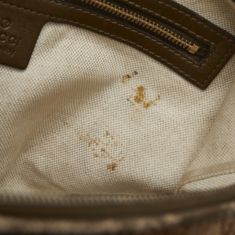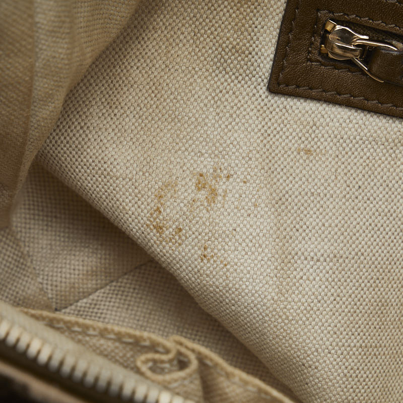 外側⇒僅かにシミ サイド⇒スレ・型崩れ 底面⇒角スレ、底鋲にキズ ハンドル⇒スレ・型崩れ、コバにスレ・はがれ・ひび割れ 金具⇒キズ・変色 開閉口⇒目立つスレ 内側⇒シミ・複数の汚れ・黒ズミ |