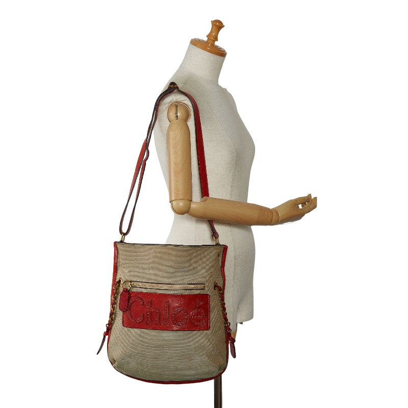 クロエ ハーレー 斜め掛け ショルダーバッグ ベージュ レッド キャンバス レザー レディース Chloe 【中古】