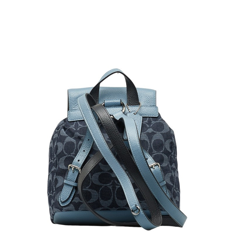 コーチ シグネチャー ロゴ シルバー金具 ビリー リュック バックパック F25893 ブルー キャンバス レザー レディース COACH 【中古】