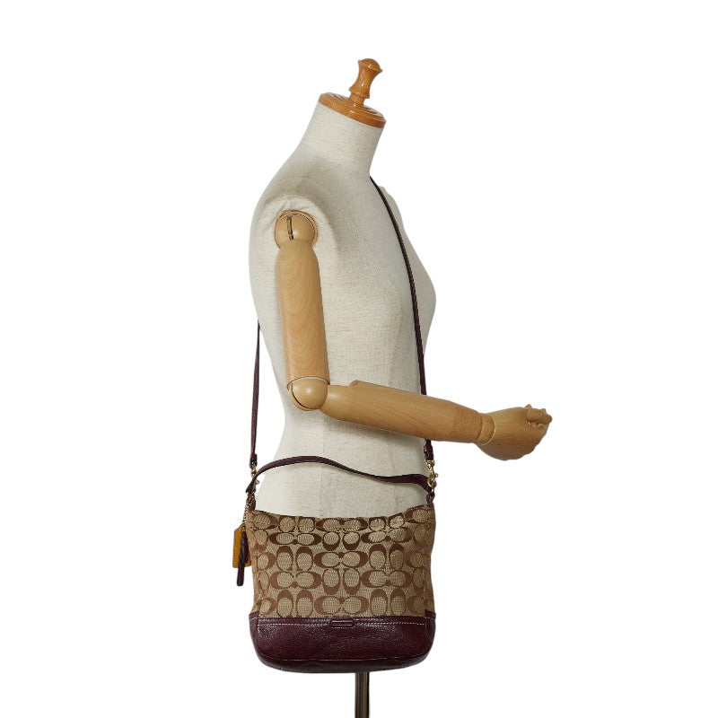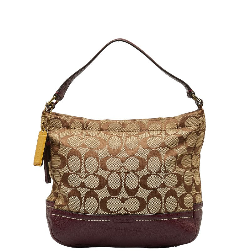 コーチ シグネチャー ハンドバッグ ショルダーバッグ 2WAY ベージュ ブラウン キャンバス レザー レディース COACH 【中古】