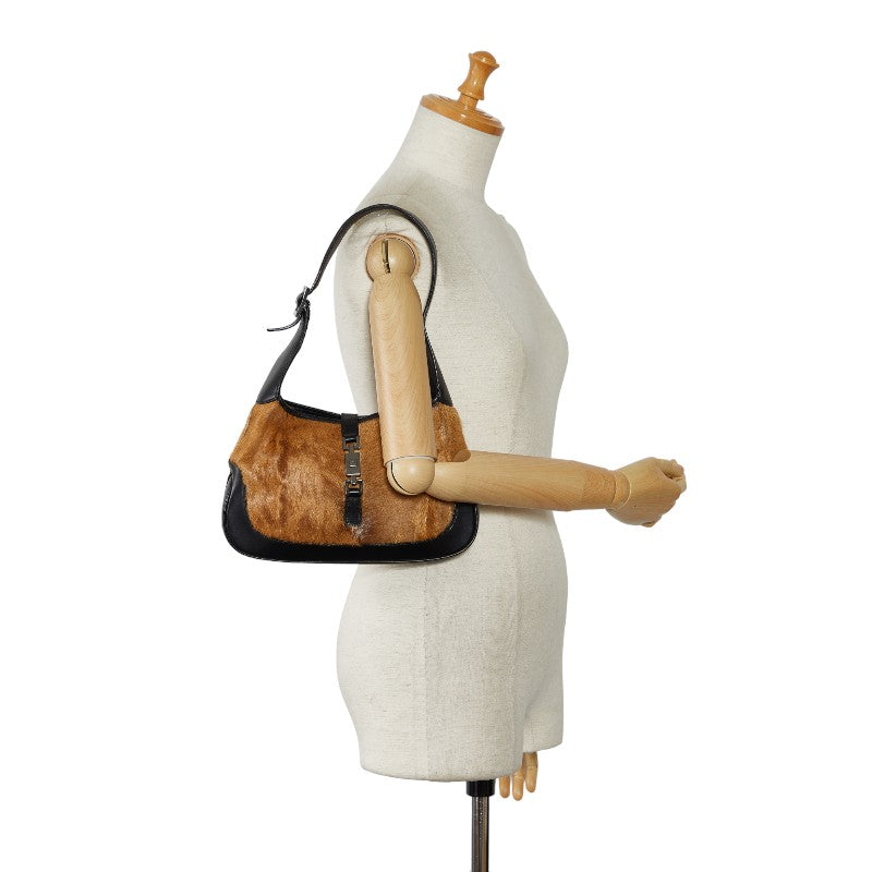 グッチ ジャッキー ワンショルダーバッグ 001 3635 1781 ブラウン ブラック ハラコ レザー レディース GUCCI 【中古】