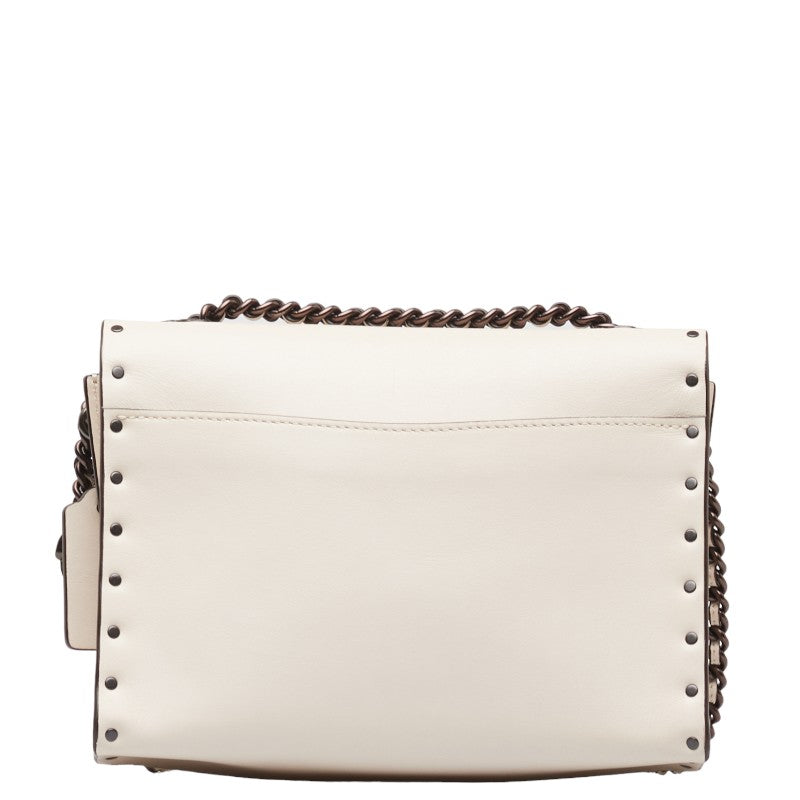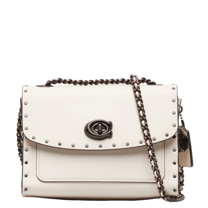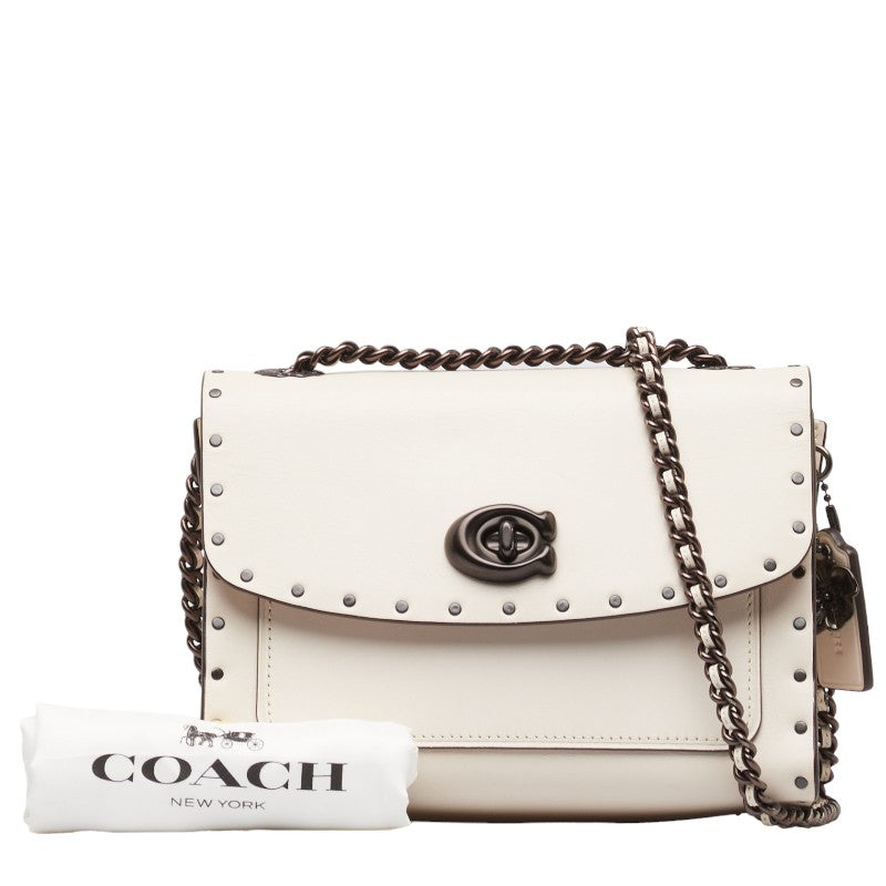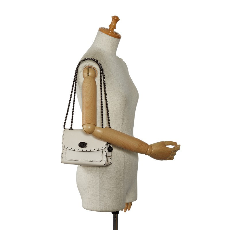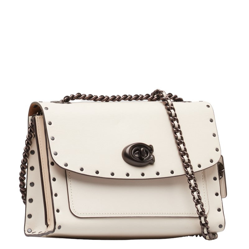 コーチ パーカー 18 ウィズ ボーダー リベット チョーク チェーン ショルダーバッグ 29389 アイボリー ホワイト レザー レディース COACH 【中古】
