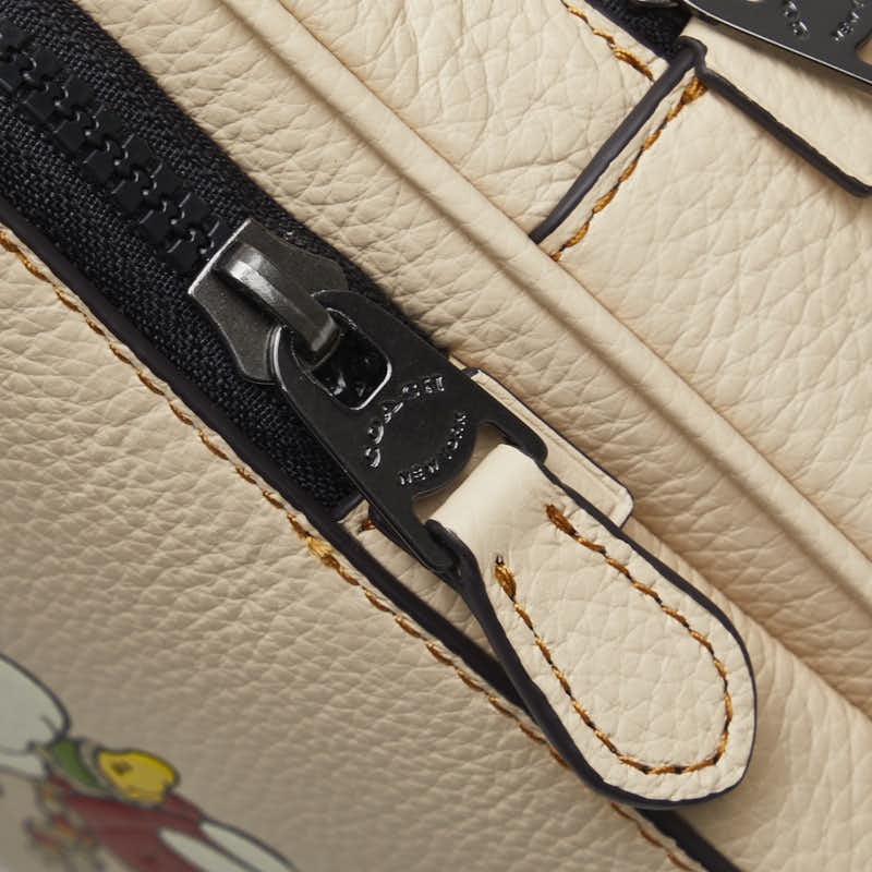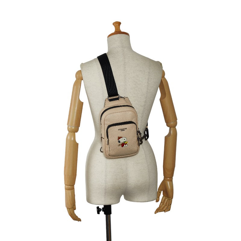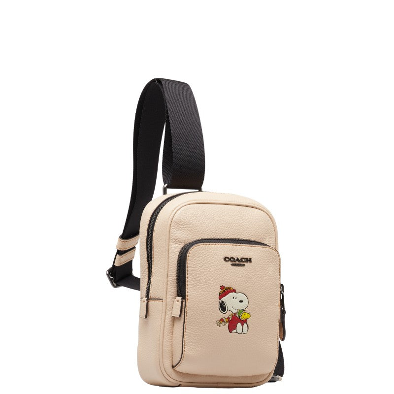 コーチ コラボ スヌーピー ウッドストック トラックパック ショルダーバッグ ボディバッグ CE602 アイボリー ホワイト レザー レディース COACH 【中古】