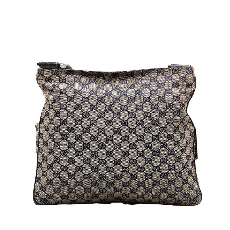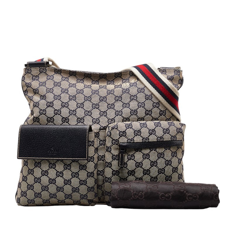 グッチ GGキャンバス シェリーライン 斜め掛け ショルダーバッグ 169937 ベージュ ネイビー キャンバス レザー レディース GUCCI 【中古】