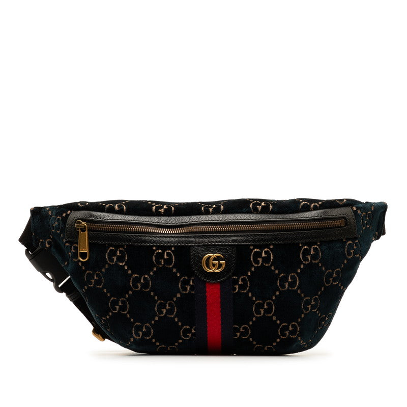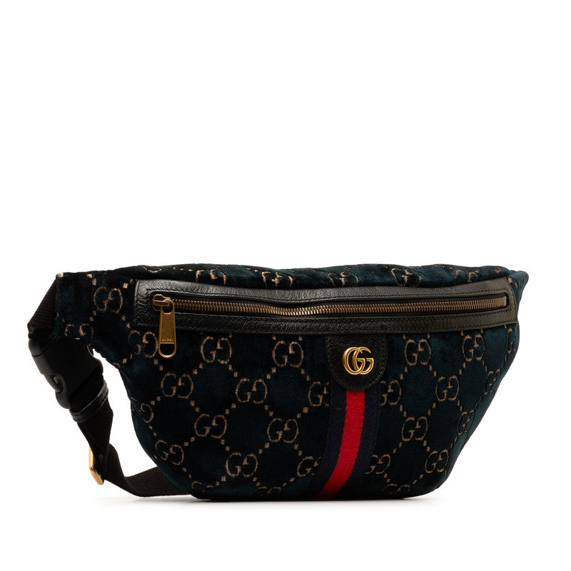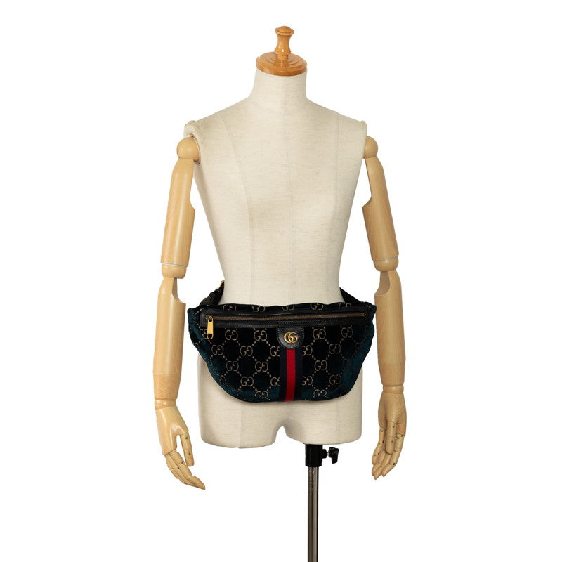 グッチ GGベルベット GGマーモント シェリーライン ボディバッグ ウエストバッグ 574968 ネイビー グリーン ベルベット レディース GUCCI 【中古】