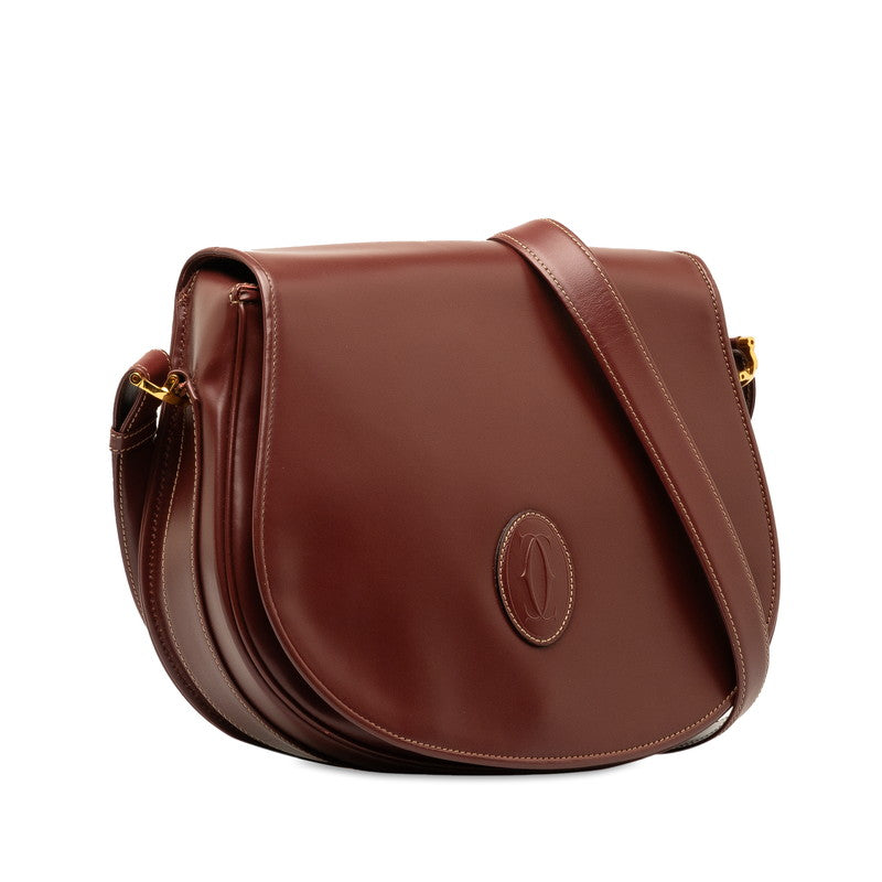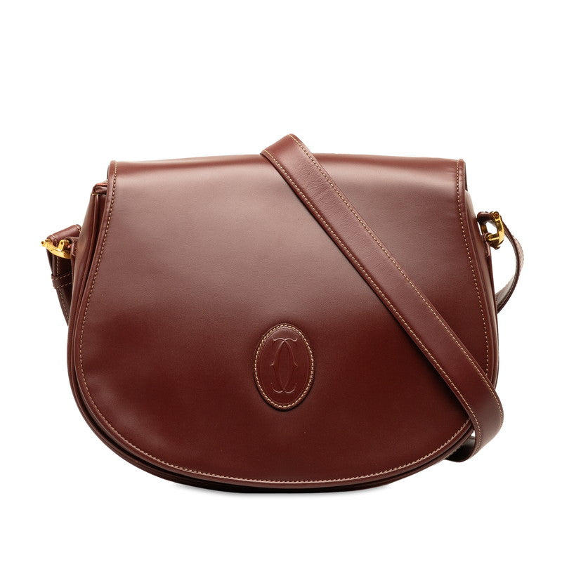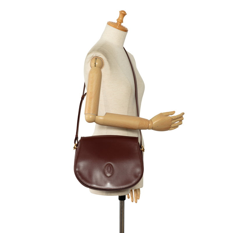 カルティエ マストライン 斜め掛け ショルダーバッグ ワインレッド ボルドー レザー レディース CARTIER 【中古】