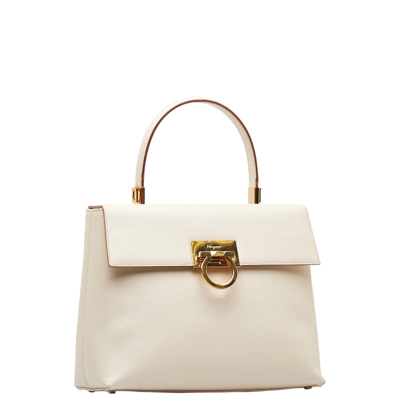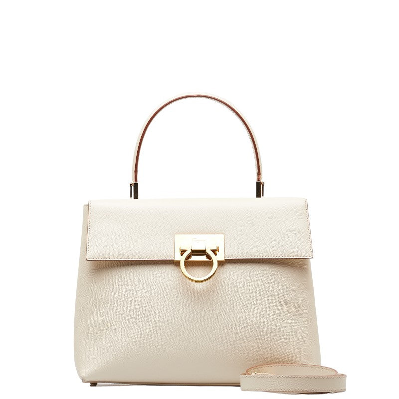 サルヴァトーレフェラガモ ガンチーニ ハンドバッグ ショルダーバッグ 2WAY ホワイト レザー レディース Salvatore Ferragamo 【中古】