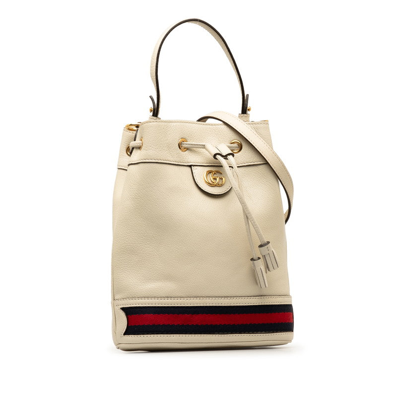 グッチ シェリーライン オフィディア スモール バケットバッグ ハンドバッグ ショルダーバッグ 2WAY 610846 ホワイト レザー レディース GUCCI 【中古】
