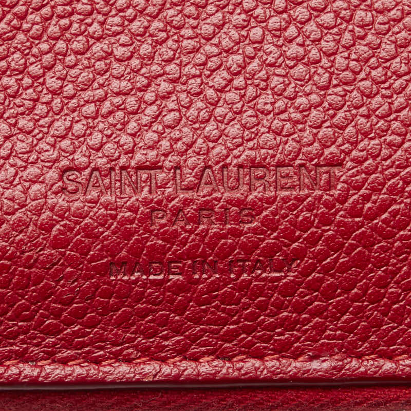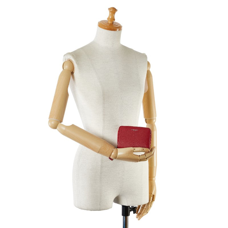 サンローラン YSLロゴ 二つ折り財布 コンパクトウォレット GUE414661 レッド レザー レディース SAINT LAURENT 【中古】