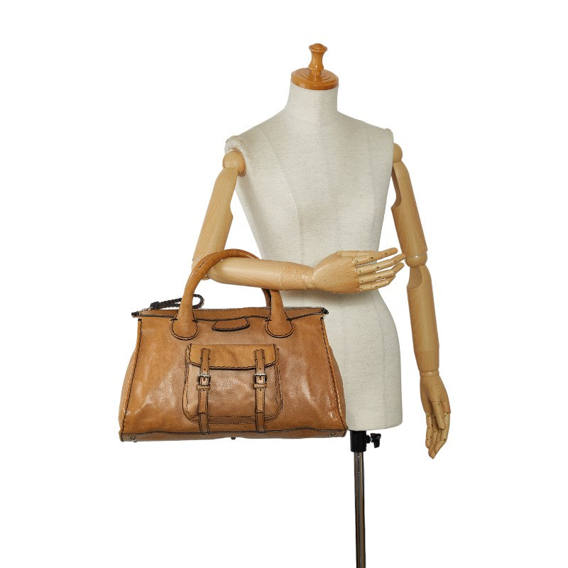 クロエ イーディス ハンドバッグ トートバッグ ベージュ レザー レディース Chloe 【中古】