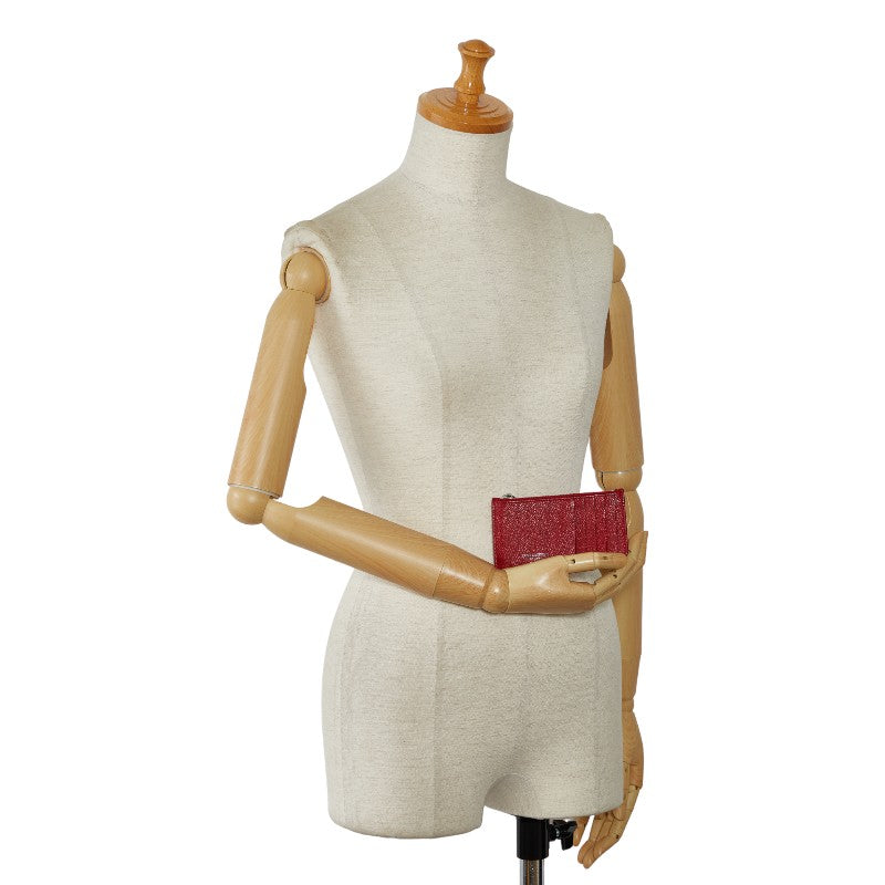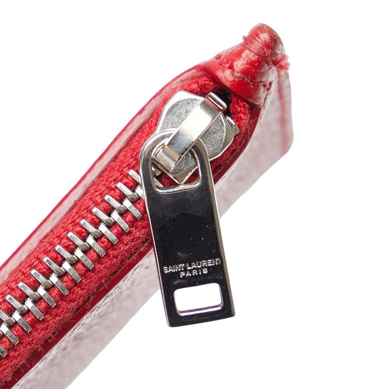 サンローラン フラグメントジップポーチ コインケース 小銭入れ レッド シルバー レザー レディース SAINT LAURENT 【中古】