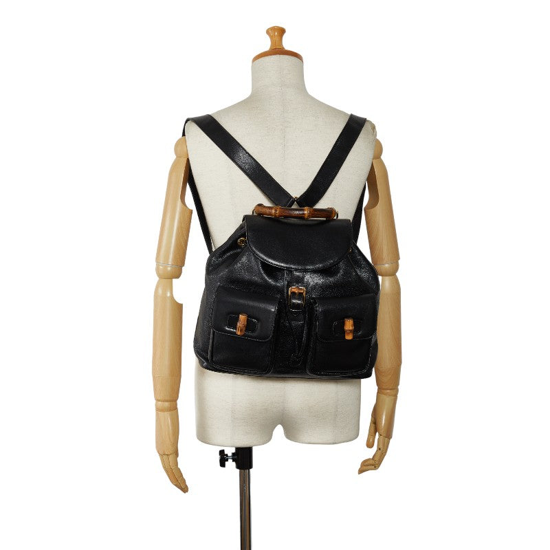 グッチ バンブー リュック バックパック 003 58 0016 ブラック レザー レディース GUCCI 【中古】