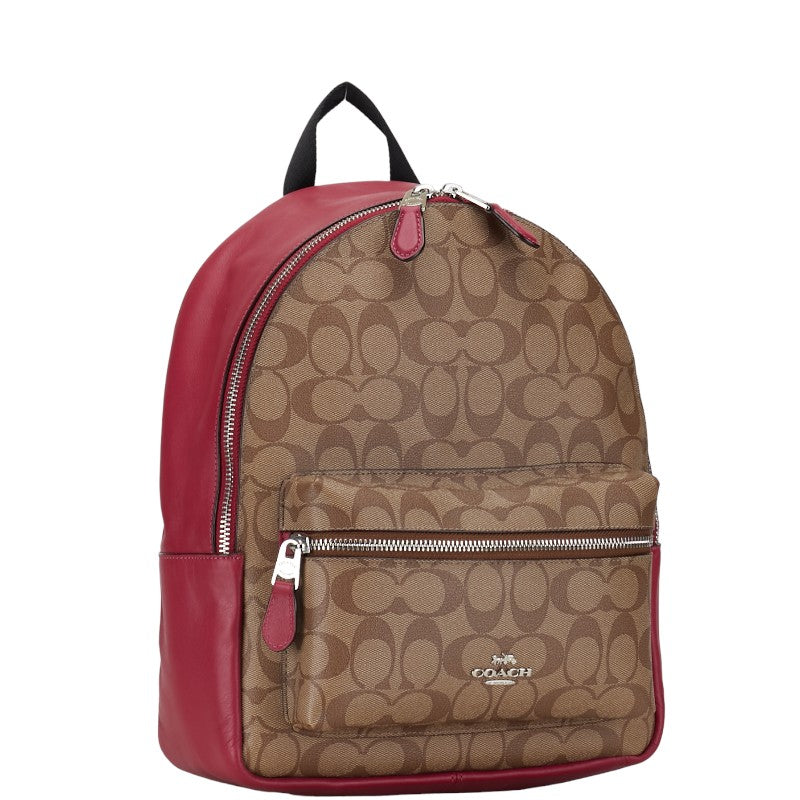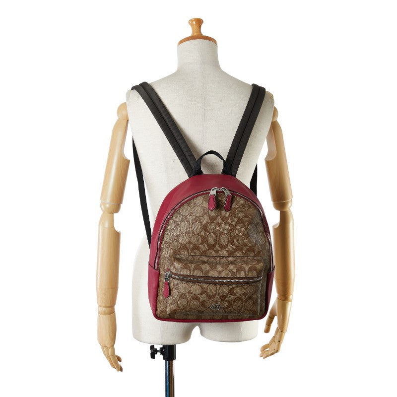 コーチ シグネチャー リュック バックパック F32200 ベージュ ピンク PVC レザー レディース COACH 【中古】