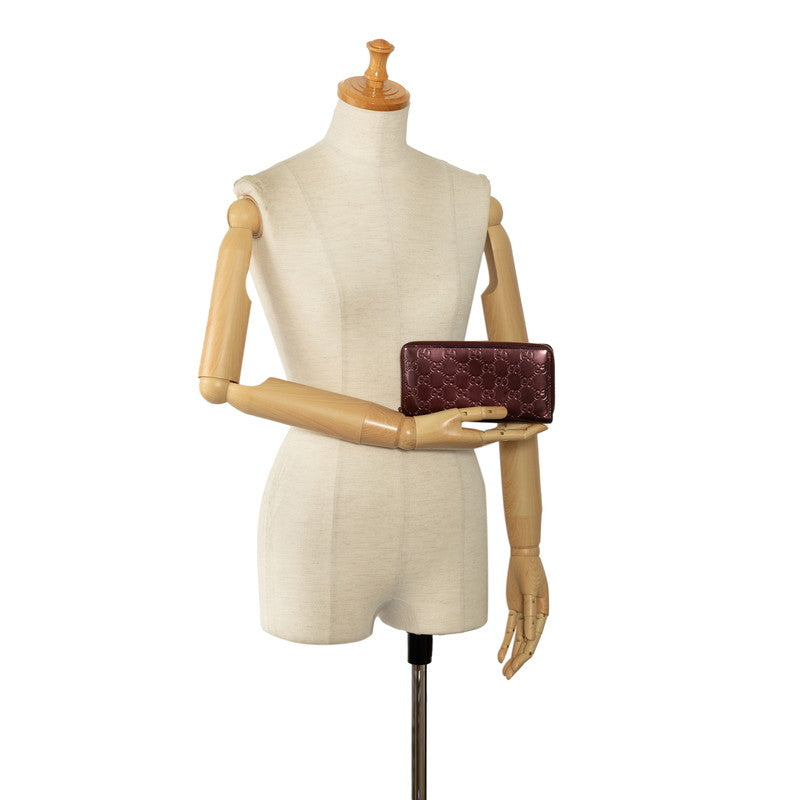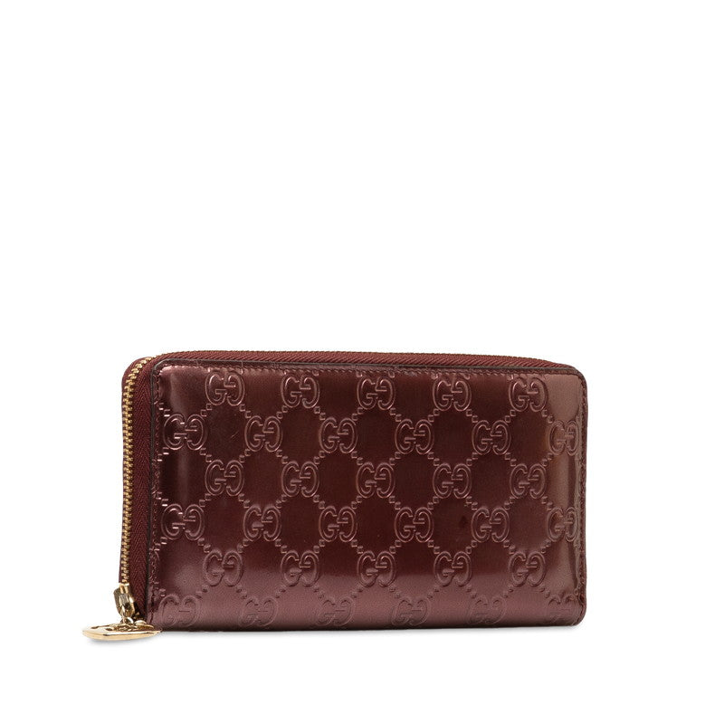 グッチ グッチシマ ラブリー Gハート ラウンドファスナー 長財布 308005 メタリックピンク パテントレザー レディース GUCCI 【中古】