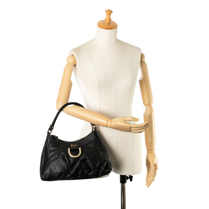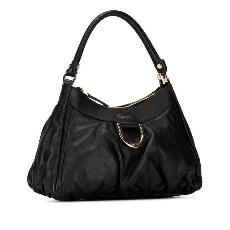 グッチ ロゴ ゴールド金具 ハンドバッグ ブラック レザー レディース GUCCI 【中古】