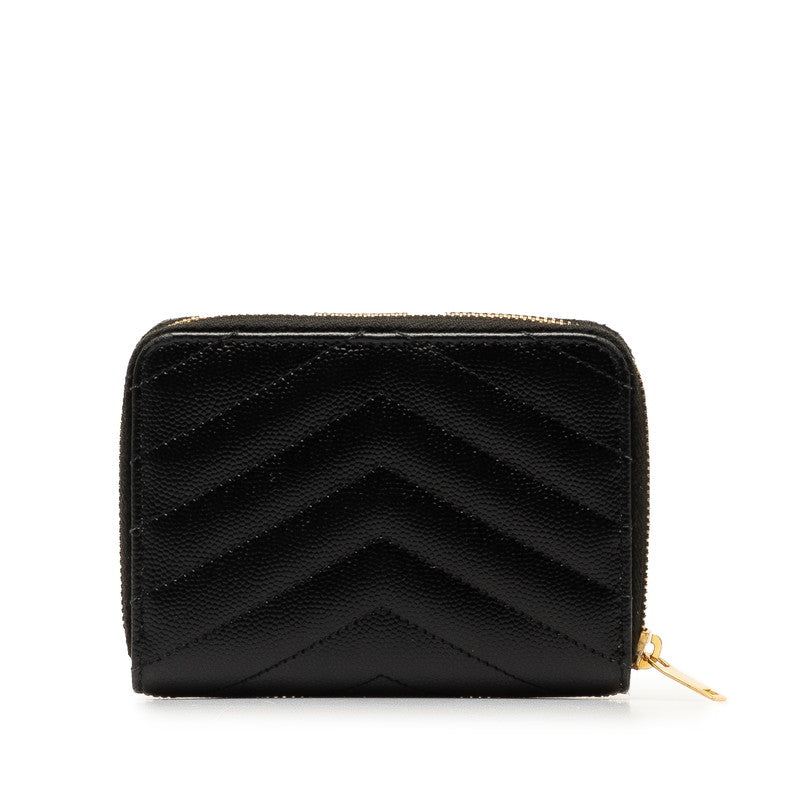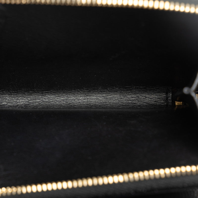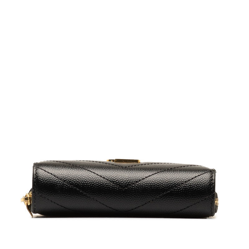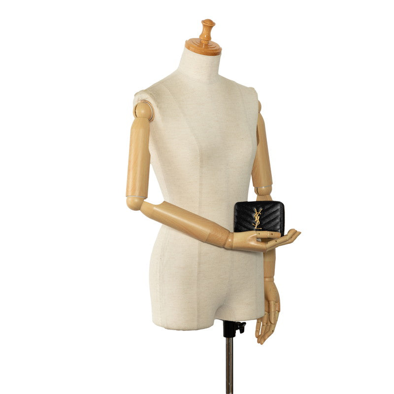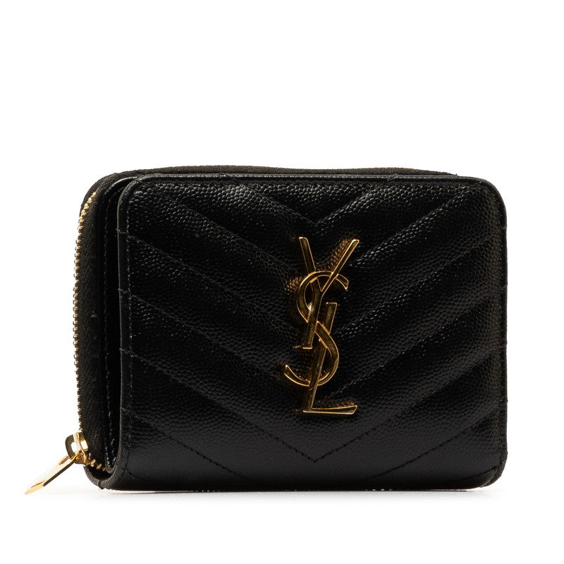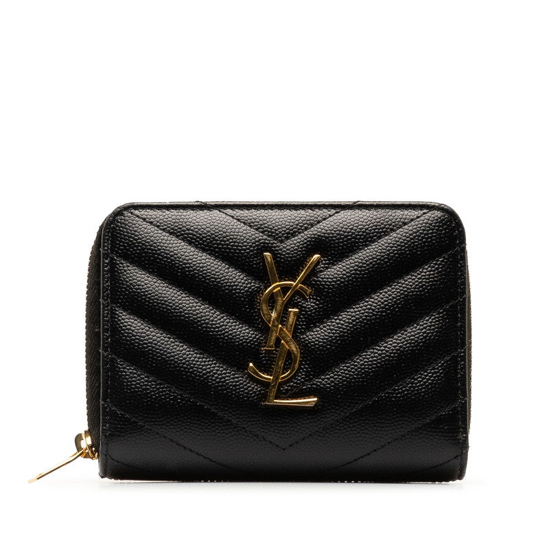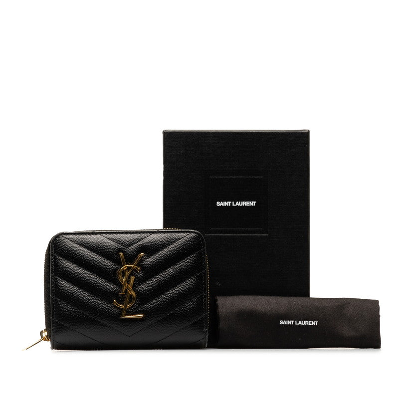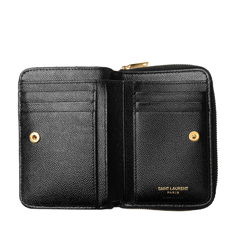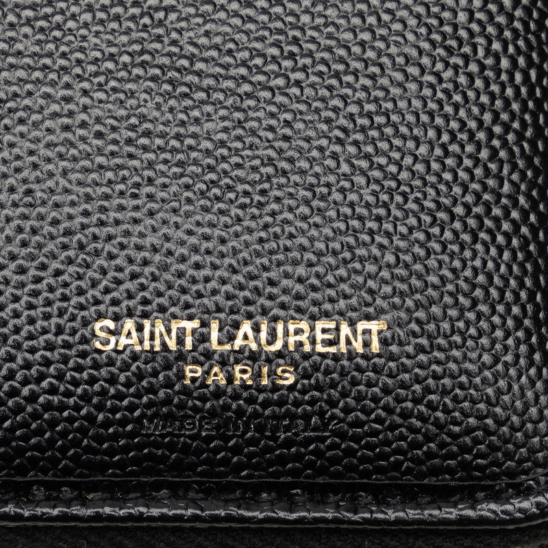 サンローラン ロゴ ゴールド金具 二つ折り財布 ラウンドファウナー コンパクトウォレット GUE403723 ブラック レザー レディース SAINT LAURENT 【中古】