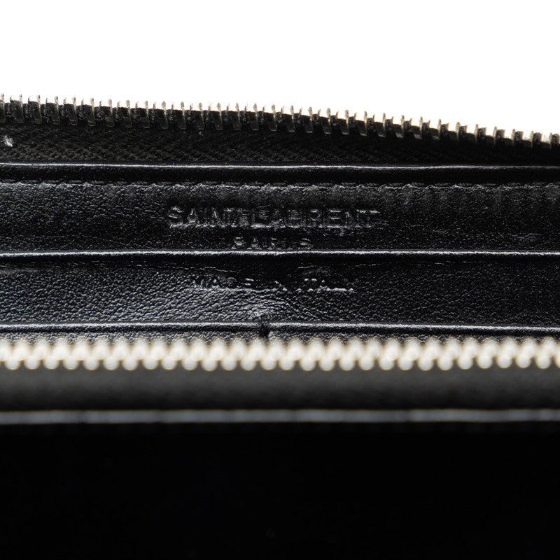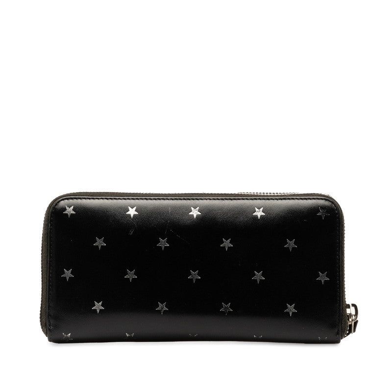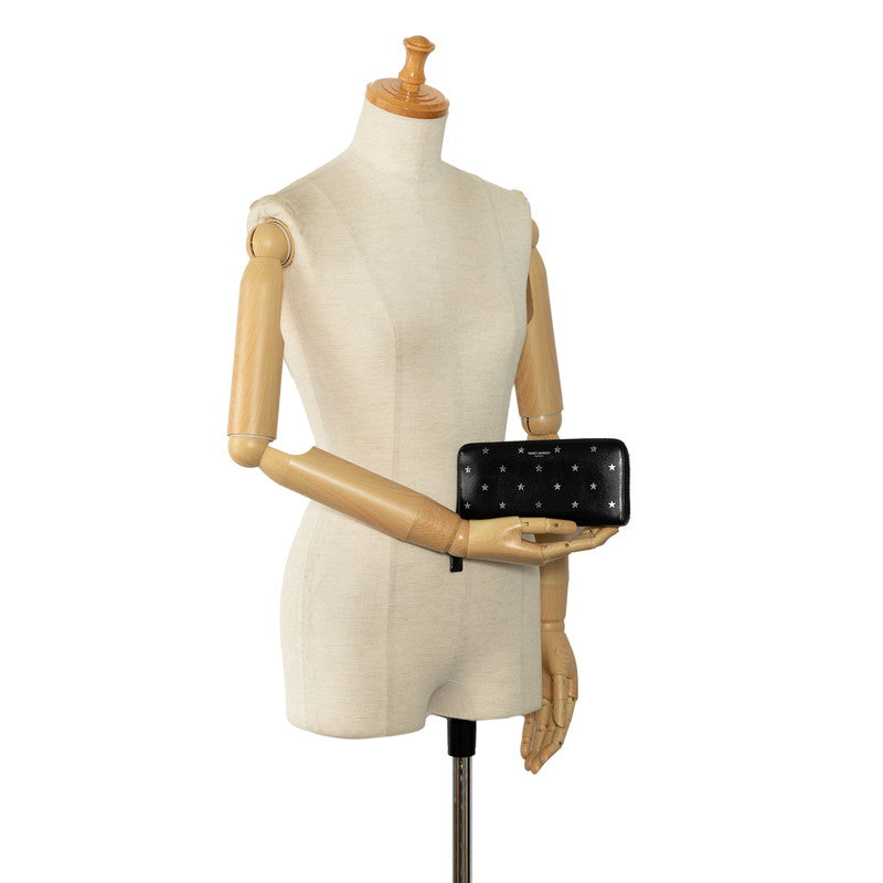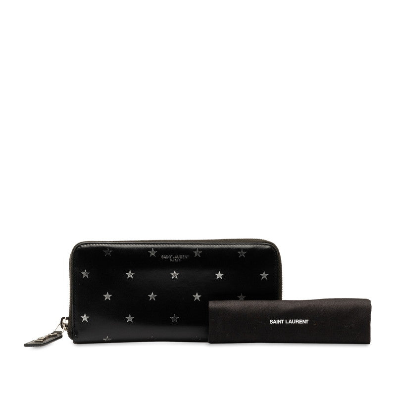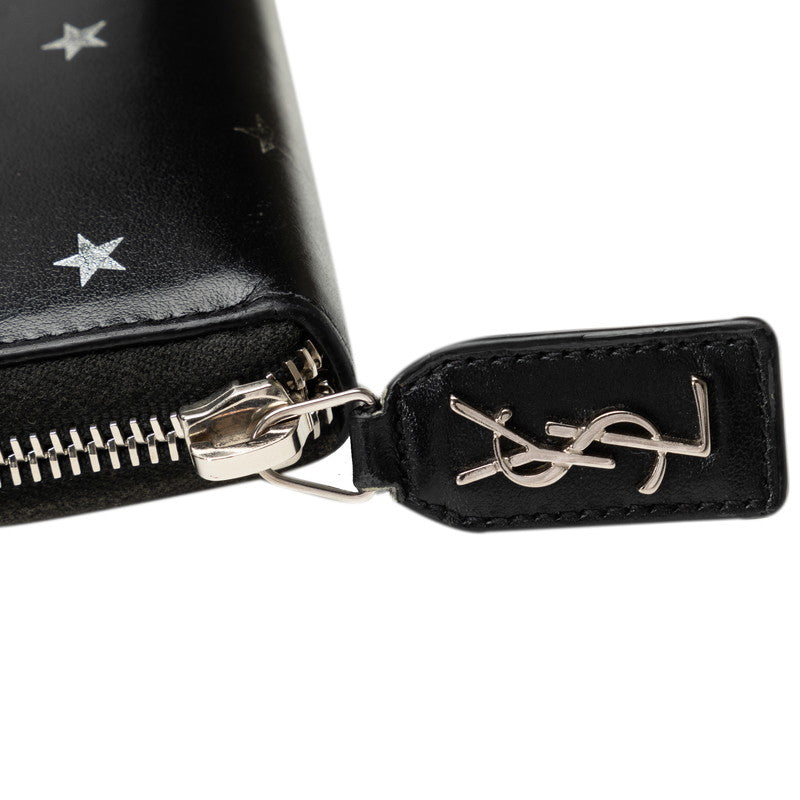 サンローラン スター 総柄 ラウンドファスナー 長財布 ブラック レザー メンズ SAINT LAURENT 【中古】