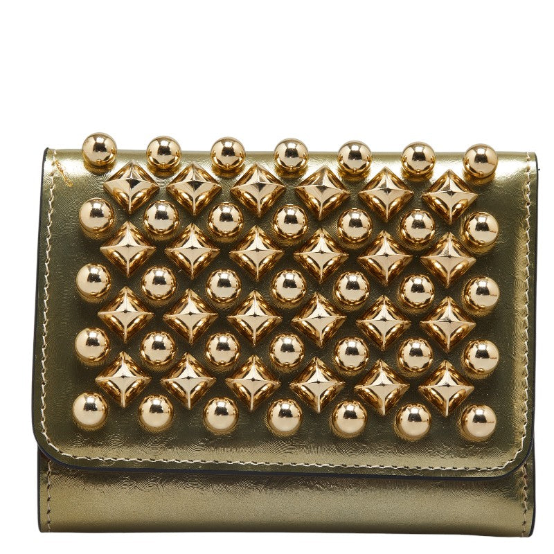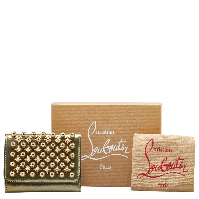 クリスチャンルブタン マカロン スタッズ 三つ折り財布 ゴールド レザー レディース Christian Louboutin 【中古】