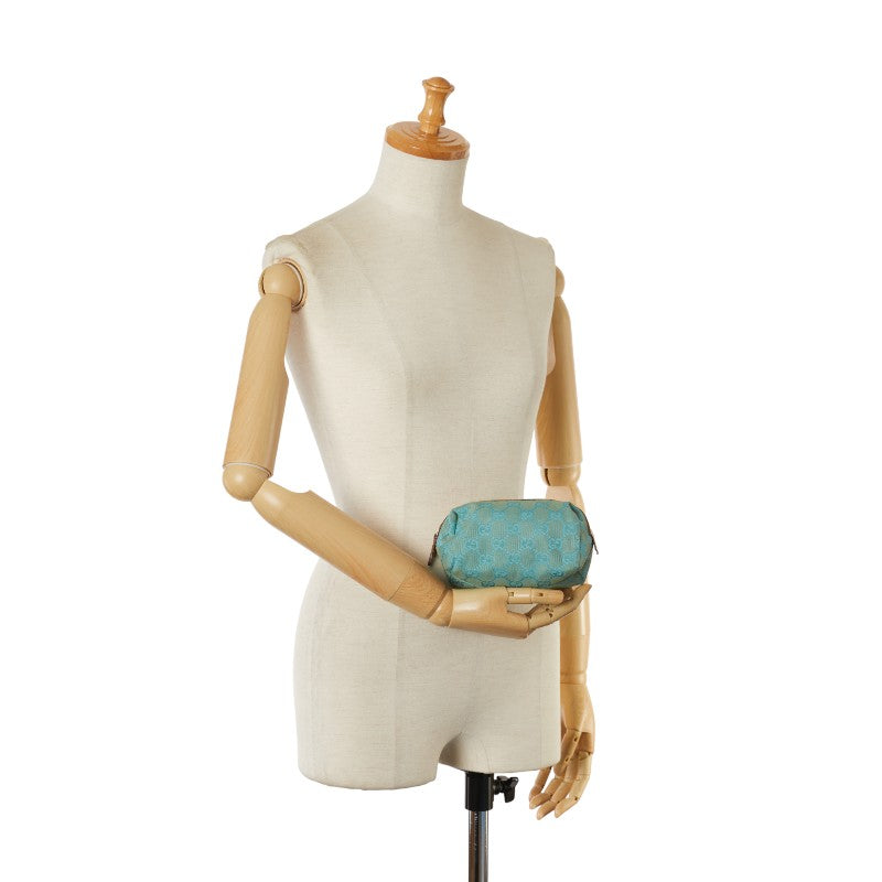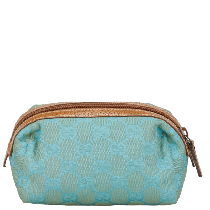 グッチ GGキャンバス ポーチ 29596 ブルー ブラウン キャンバス レザー レディース GUCCI 【中古】