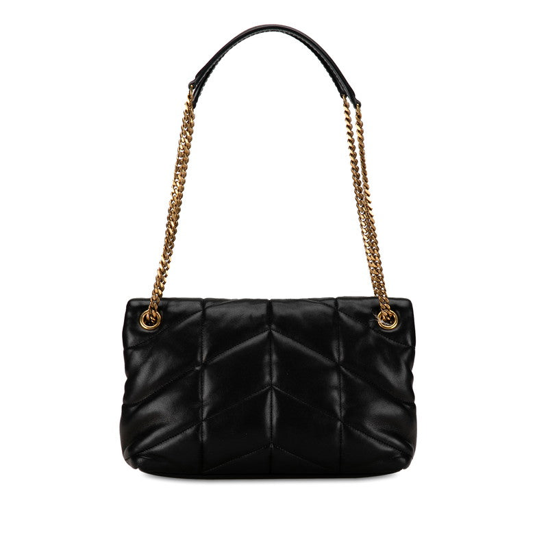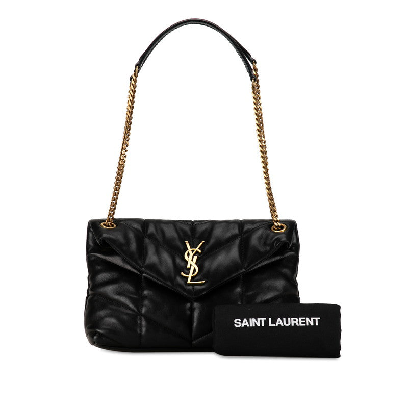サンローラン YSLロゴ パッファ チェーン ショルダーバッグ 577476 ブラック ゴールド レザー レディース SAINT LAURENT 【中古】