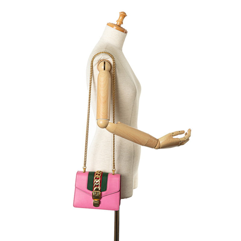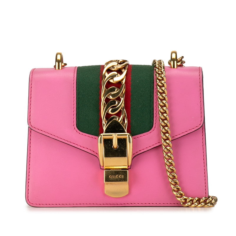 グッチ シェリーライン シルヴィ ミニ 斜め掛け チェーン ショルダーバッグ 431666 ピンク レザー レディース GUCCI 【中古】