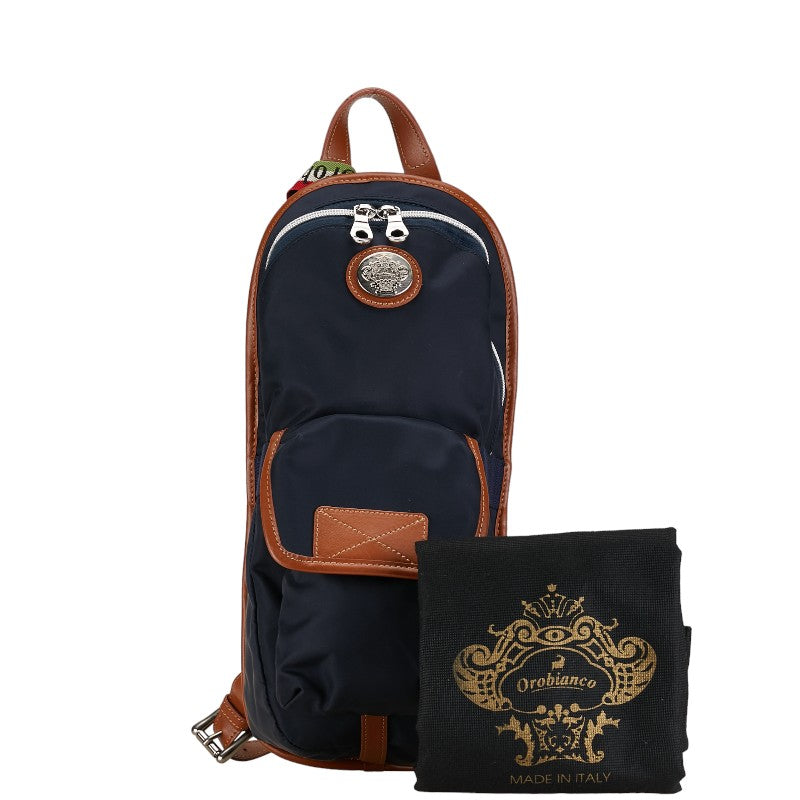 オロビアンコ ミニリュック バックパック ボディバッグ ネイビー ブラウン ナイロン レザー メンズ Orobianco 【中古】