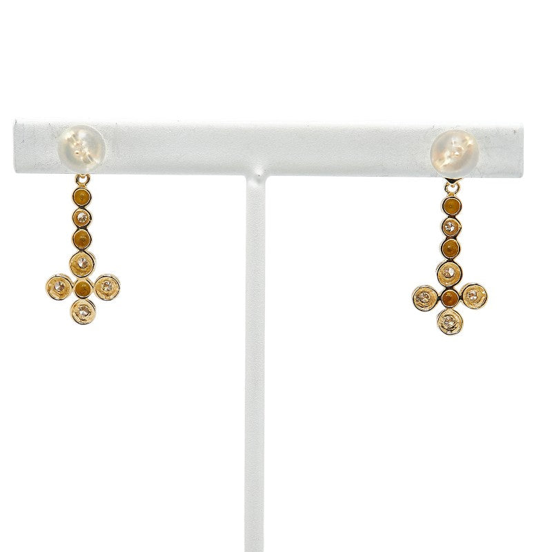 クロス ラインストーン モチーフ ピアス K18YG イエローゴールド レディース 【中古】
