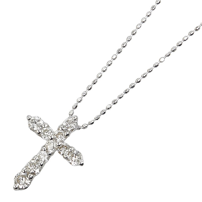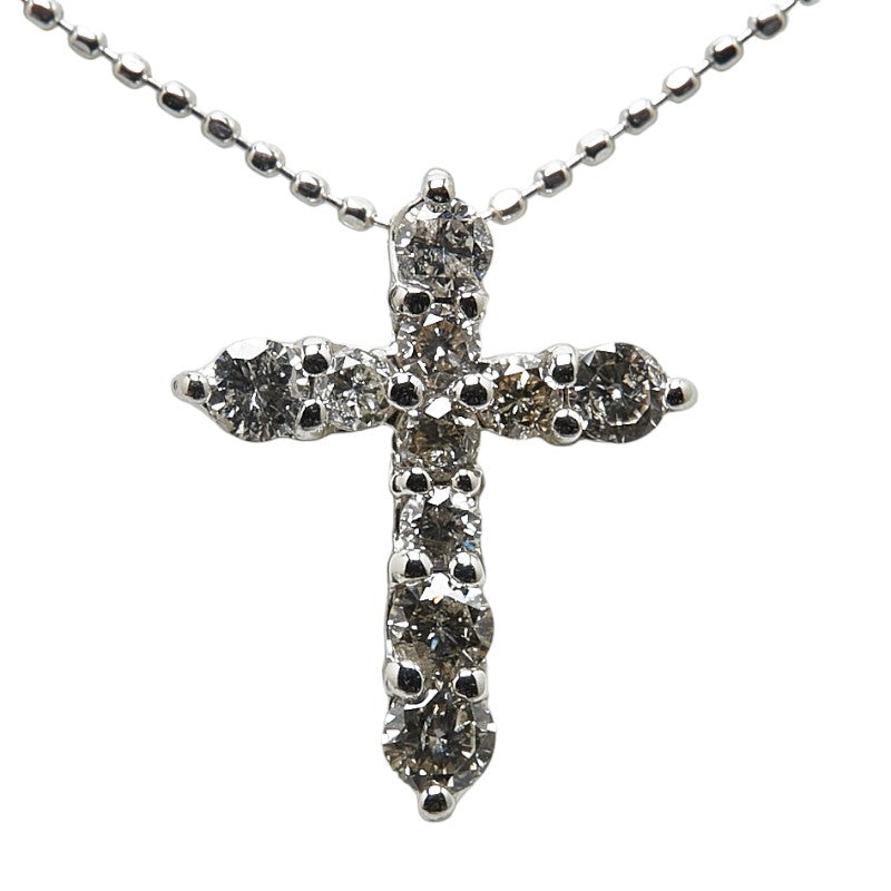 クロス 十字架 ネックレス K18WG ホワイトゴールド レディース 【中古】