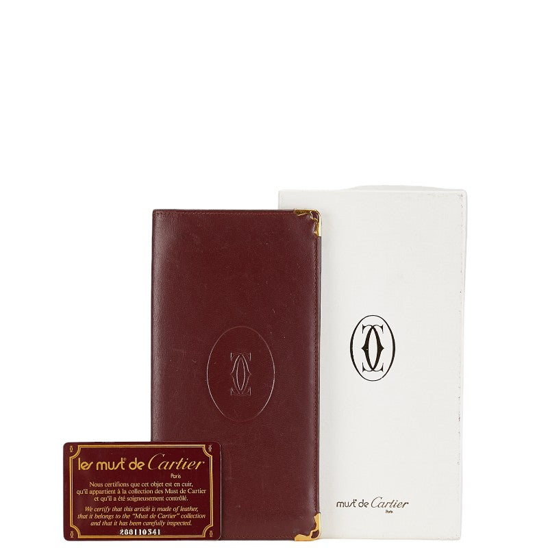 カルティエ マストライン 長財布 ロングウォレット ボルドー ワインレッド レザー レディース CARTIER 【中古】