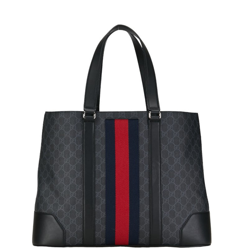 グッチ GGスプリーム シェリーライン トートバッグ ショルダーバッグ 495560 ブラック PVC レザー レディース GUCCI 【中古】