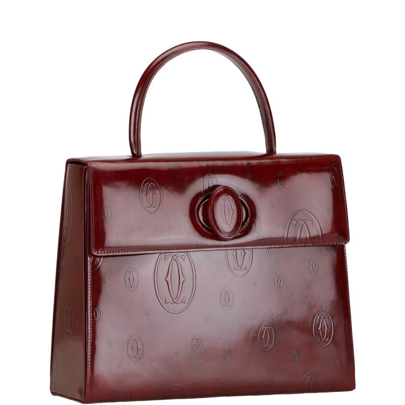カルティエ マストライン ハッピーバースデー ハンドバッグ ワインレッド パテントレザー レディース CARTIER 【中古】