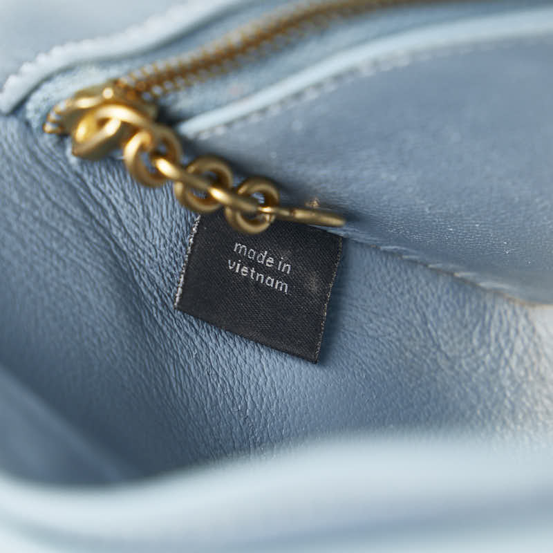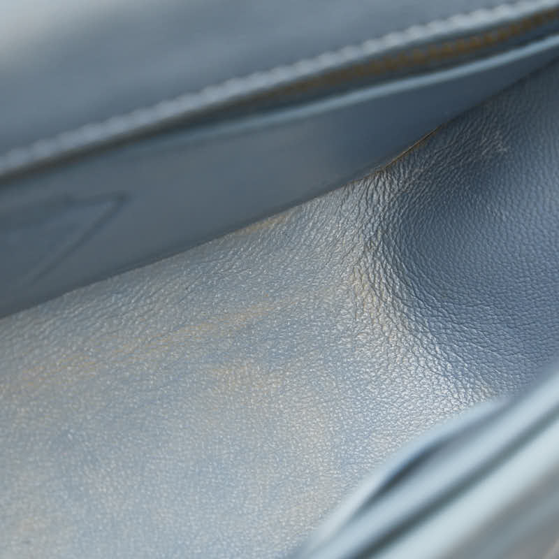 外側⇒スレ・キズ サイド⇒僅かにキズ 底面⇒スレ・キズ、角スレ ショルダー⇒金具跡・薄汚れ、若干のコバはがれ 金具⇒メッキはがれ フラップ・付け根・裏⇒小キズ・僅かに亀裂 内側⇒底部に変色、メインとポケット内にスレ・キズ におい⇒僅かに香水臭 |
