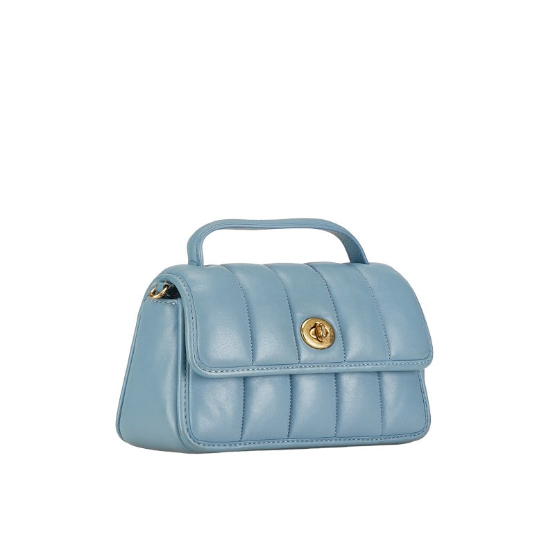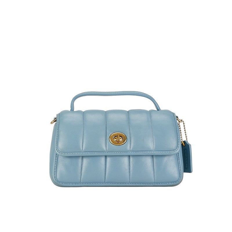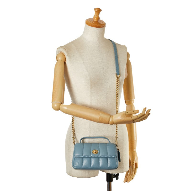 コーチ ターンロック クラッチ20 キルティング ハンドバッグ チェーン ショルダーバッグ 2WAY C3845 ライトブルー レザー レディース COACH 【中古】