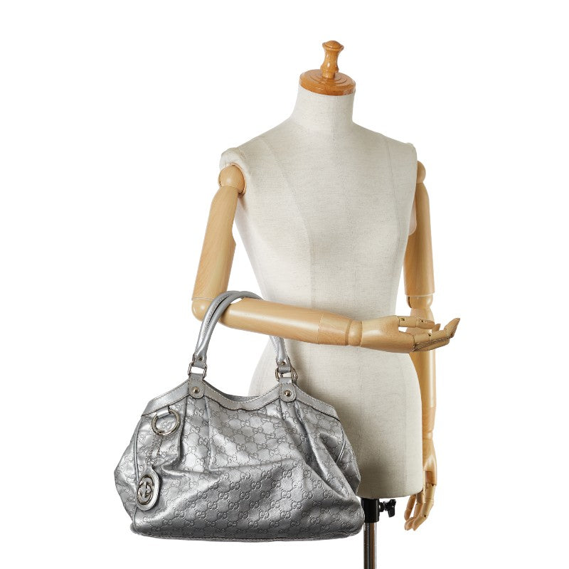 グッチ グッチシマ スーキー ハンドバッグ トートバッグ 211944 シルバー レザー レディース GUCCI 【中古】