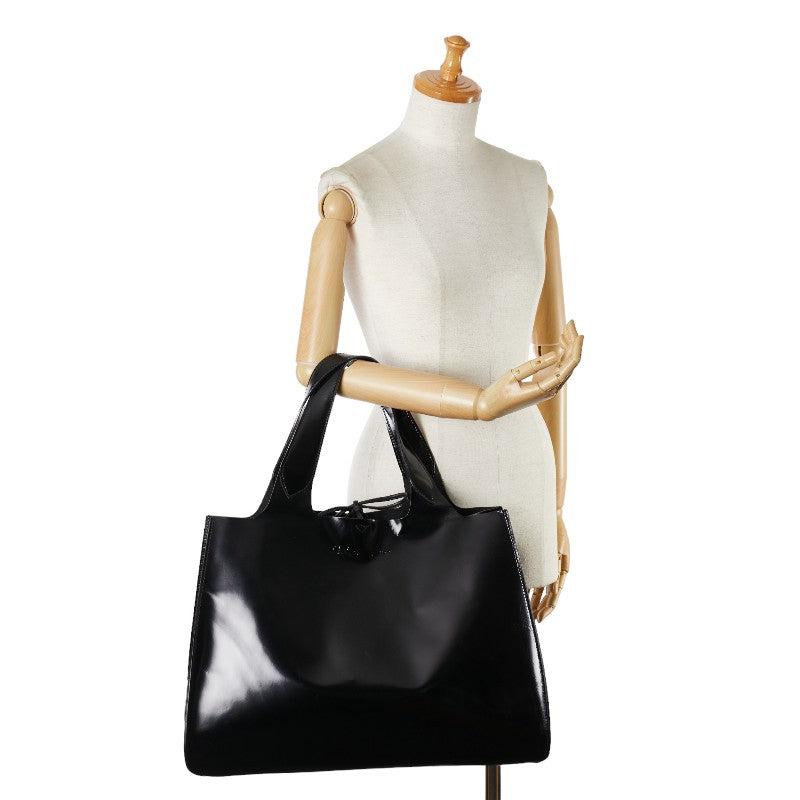 サルヴァトーレフェラガモ ハンドバッグ トートバッグ ブラック エナメル レディース Salvatore Ferragamo 【中古】