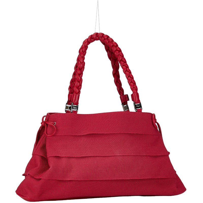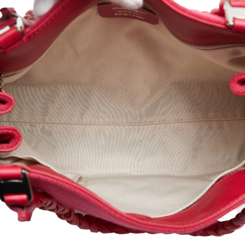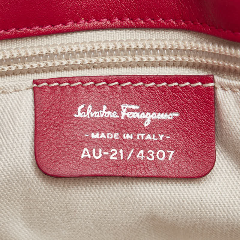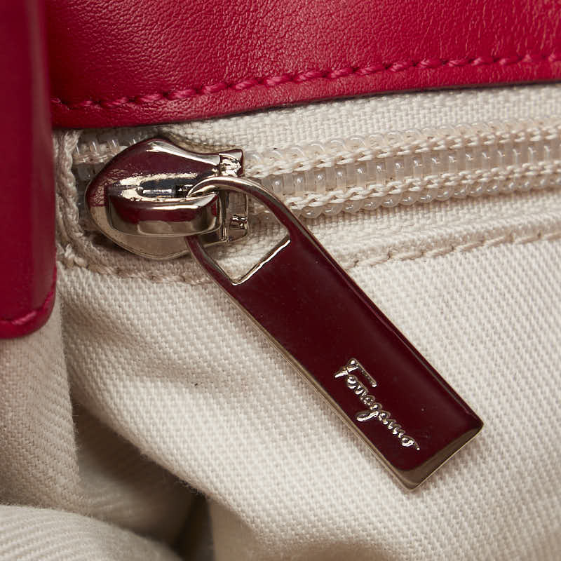 サルヴァトーレフェラガモ ハンドバッグ ピンク レッド キャンバス レザー レディース Salvatore Ferragamo 【中古】