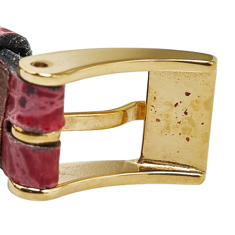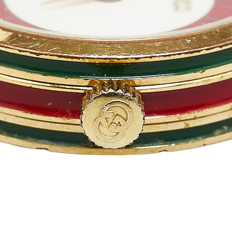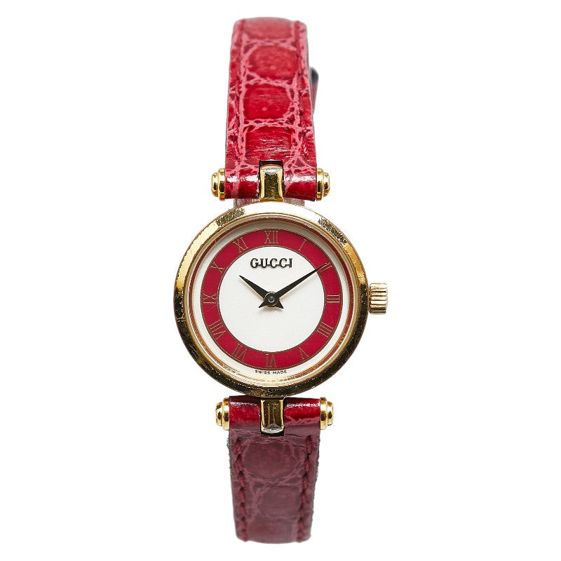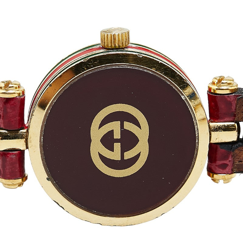 グッチ シェリーライン 腕時計 16110307 クオーツ ホワイト レッド文字盤 メッキ レザー レディース GUCCI 【中古】
