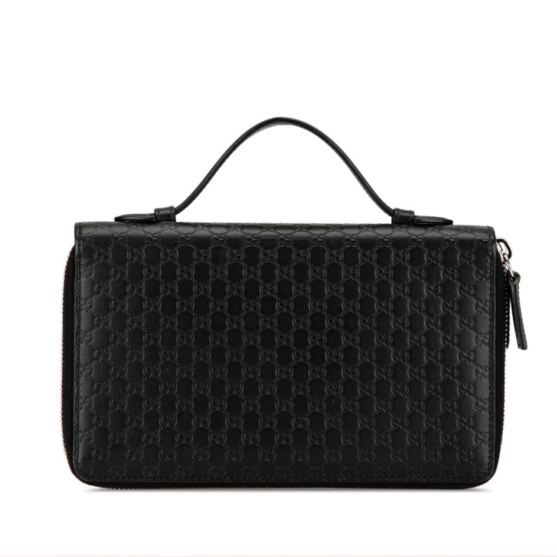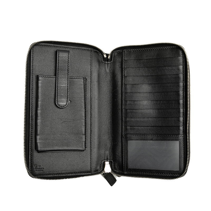 グッチ マイクログッチ ラウンドファスナー 長財布 トラベルウォレット 449246 ブラック レザー メンズ GUCCI 【中古】