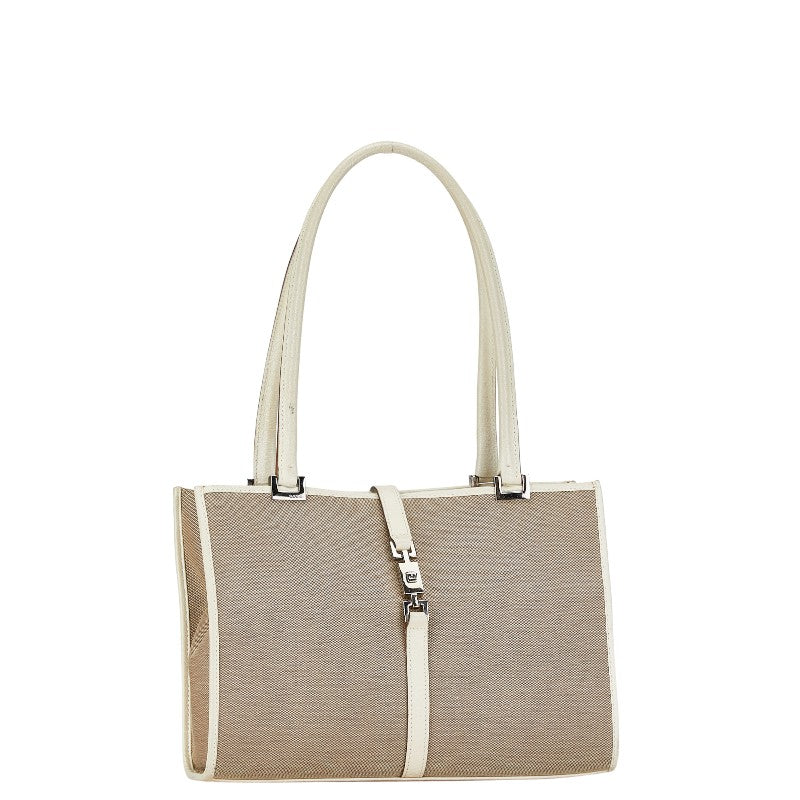 グッチ ジャッキー トートバッグ ショルダーバッグ 002 1073 1705 ベージュ アイボリー ホワイト キャンバス レザー レディース GUCCI 【中古】
