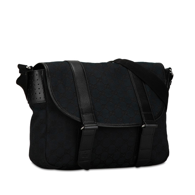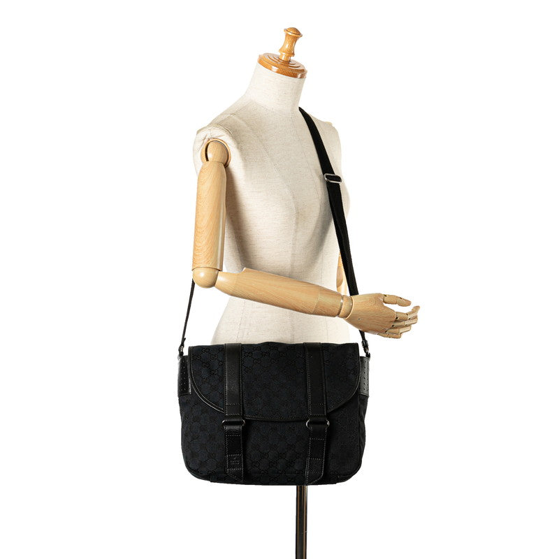 グッチ GGキャンバス 斜め掛け ショルダーバッグ メッセンジャーバッグ 145859 ブラック キャンバス レザー レディース GUCCI 【中古】