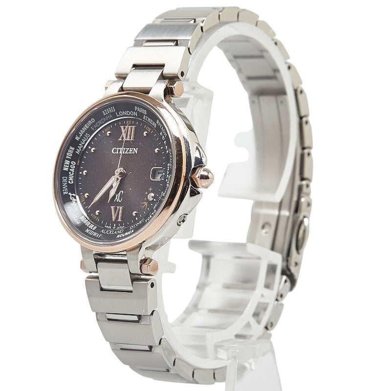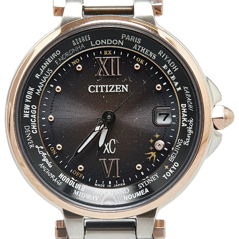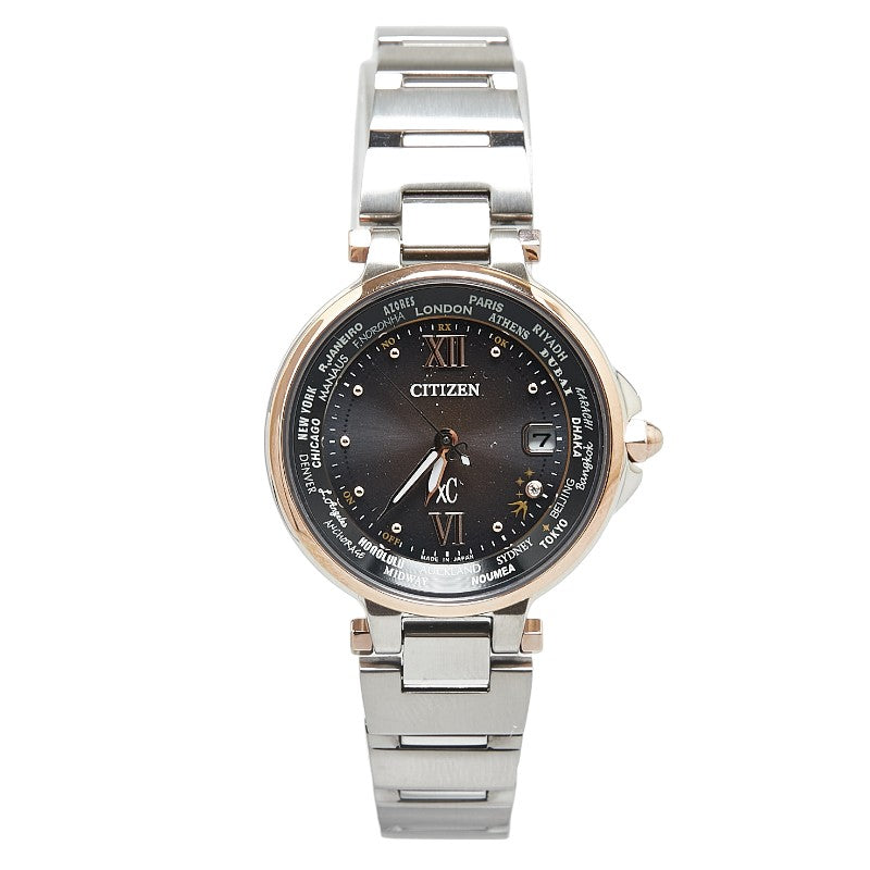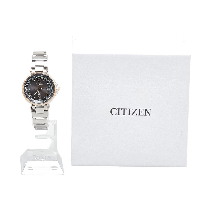 シチズン ハッピーフライト Happy Flight 1200本限定 腕時計 EC1011-71W エコドライブ電波時計 ブラウン文字盤 ステンレススチール レディース CITIZEN 【中古】
