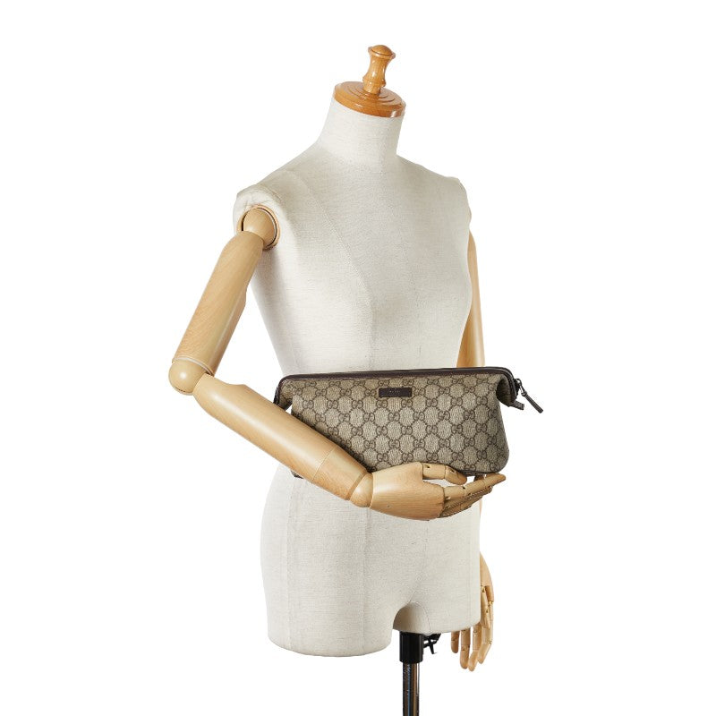グッチ GGスプリーム ポーチ コスメティックポーチ 130652 ベージュ ブラウン PVC レザー レディース GUCCI 【中古】