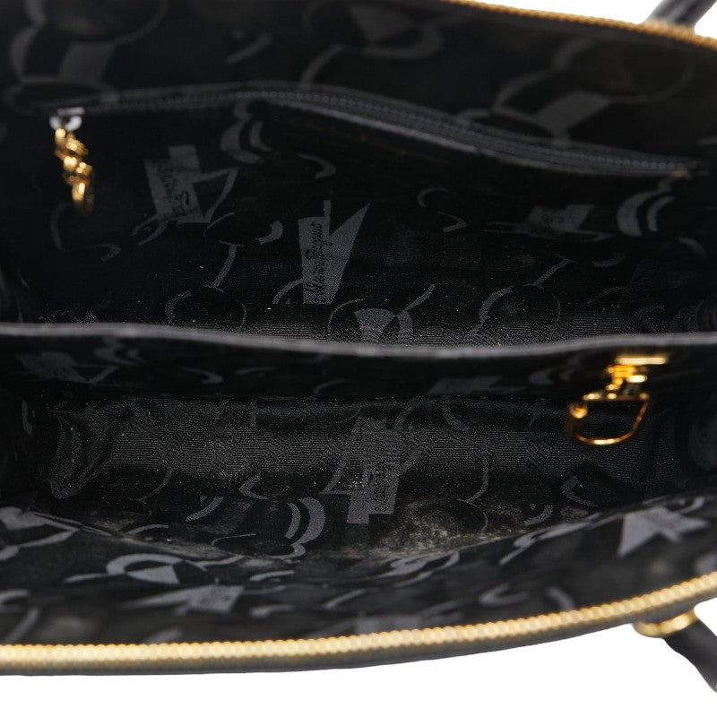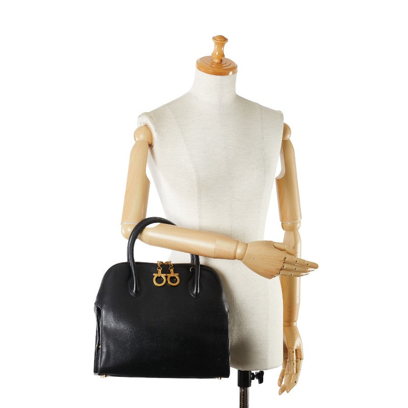 サルヴァトーレフェラガモ ガンチーニ ハンドバッグ ショルダーバッグ 2WAY ブラック レザー レディース Salvatore Ferragamo 【中古】