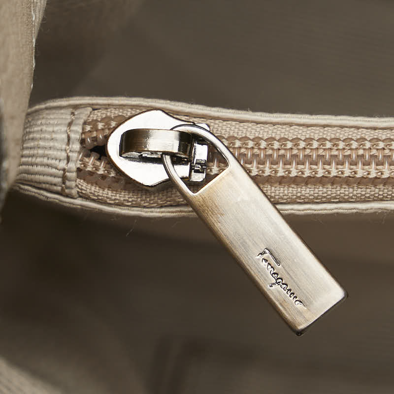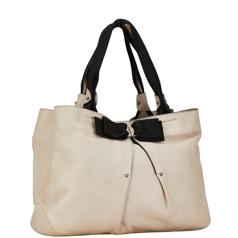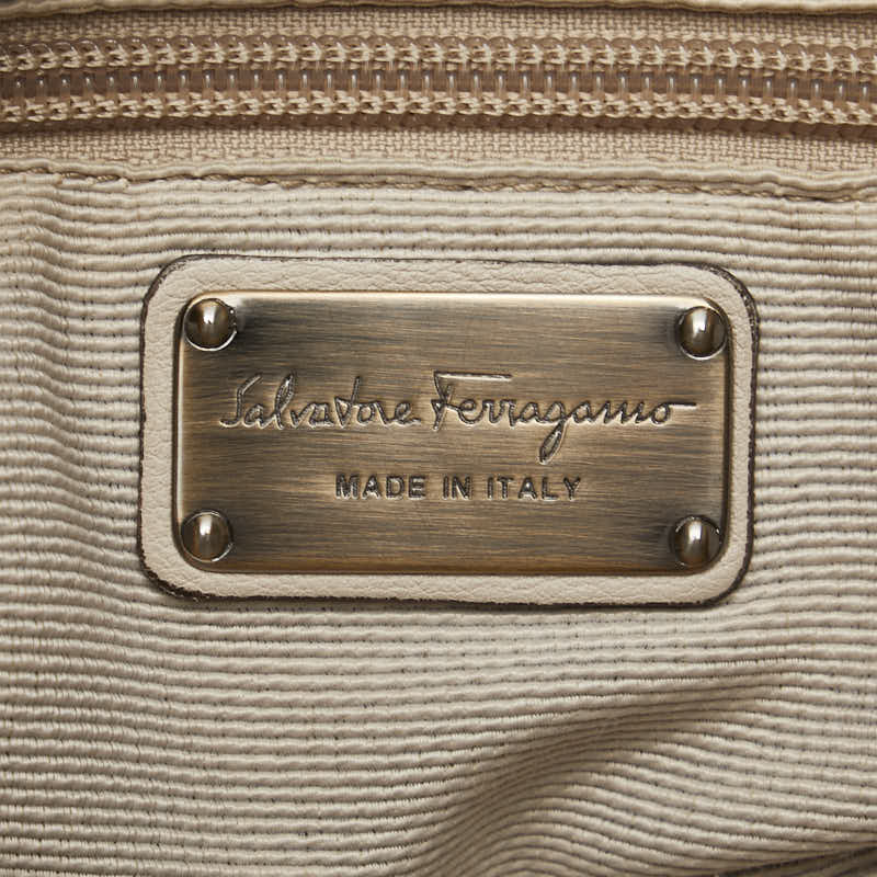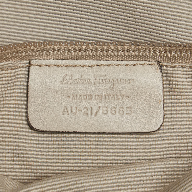 サルヴァトーレフェラガモ ヴァラリボン ハンドバッグ AU-21 B665 ホワイト ブラック レザー ナイロン レディース Salvatore Ferragamo 【中古】
