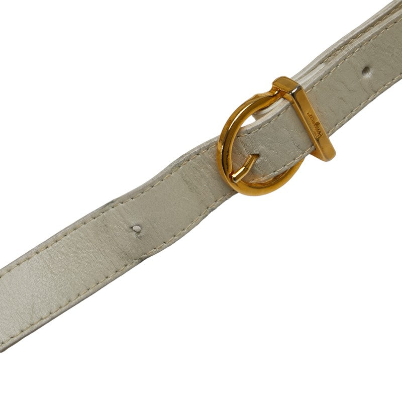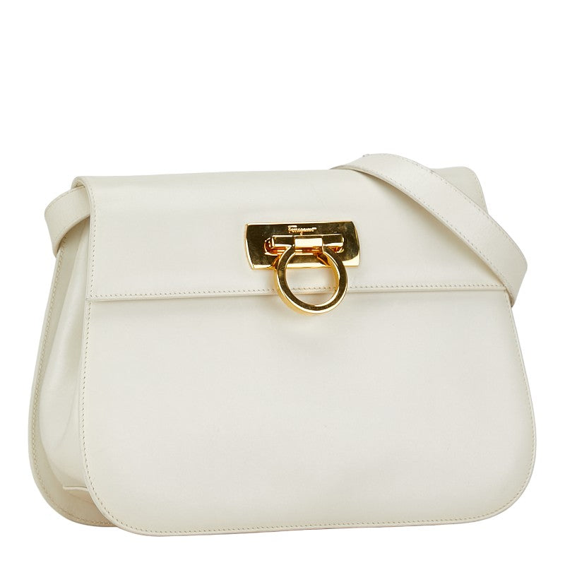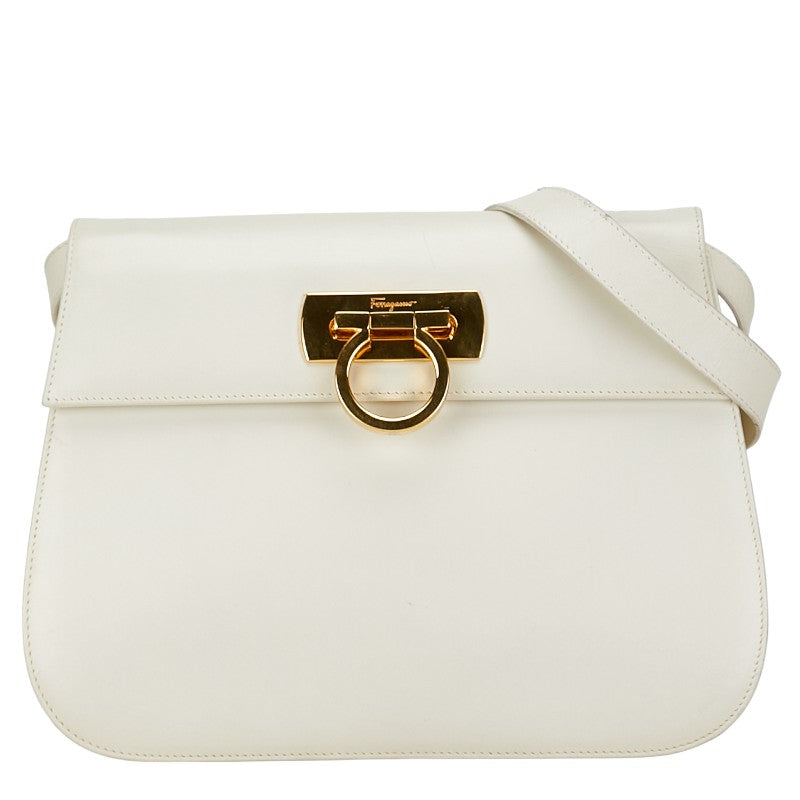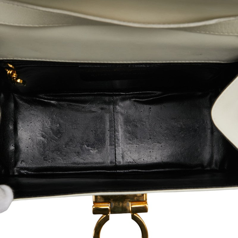 サルヴァトーレフェラガモ ガンチーニ 斜め掛け ショルダーバッグ アイボリー ホワイト レザー レディース Salvatore Ferragamo 【中古】