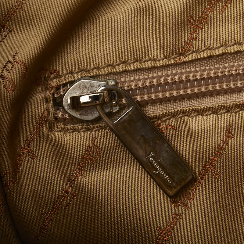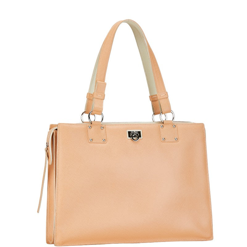 サルヴァトーレフェラガモ ガンチーニ トートバッグ ハンドバッグ AQ-21 0851 ピンクベージュ ホワイト レザー レディース Salvatore Ferragamo 【中古】