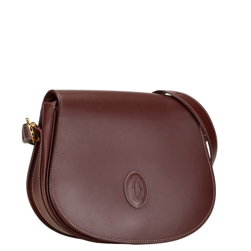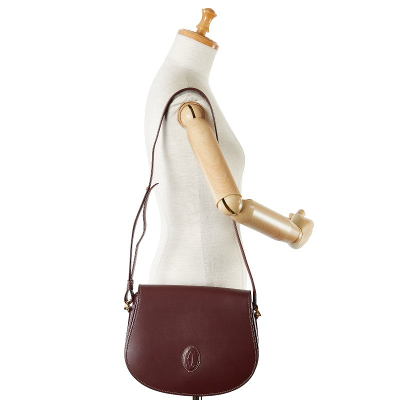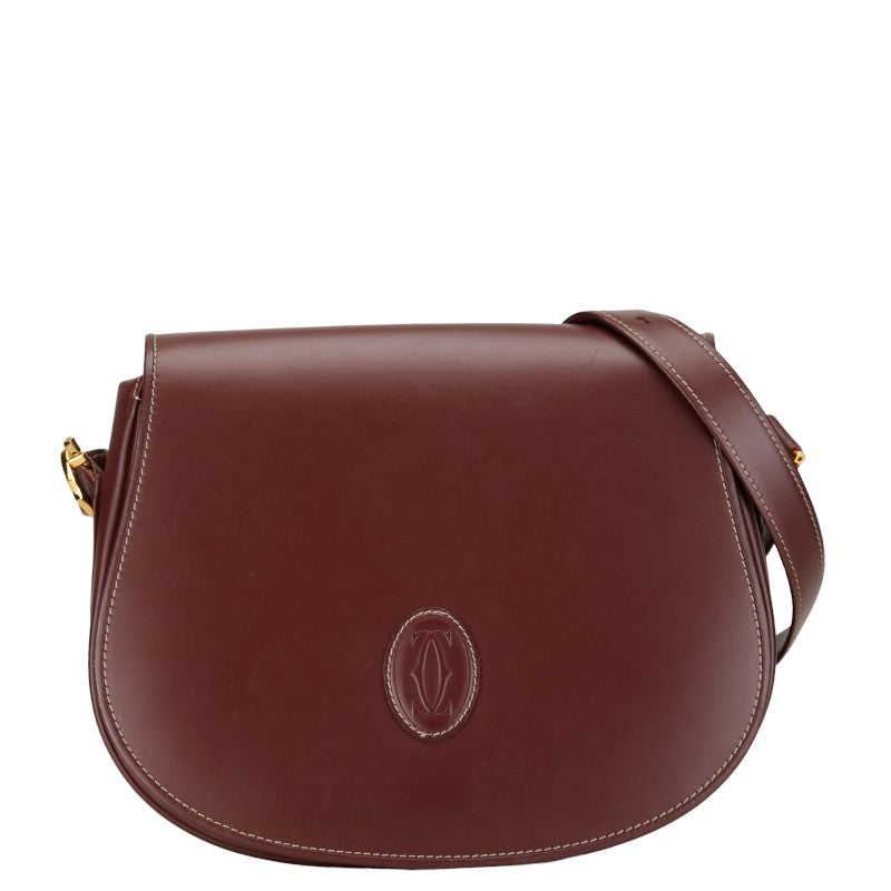 カルティエ マストライン 斜め掛け ショルダーバッグ ボルドー ワインレッド レザー レディース CARTIER 【中古】